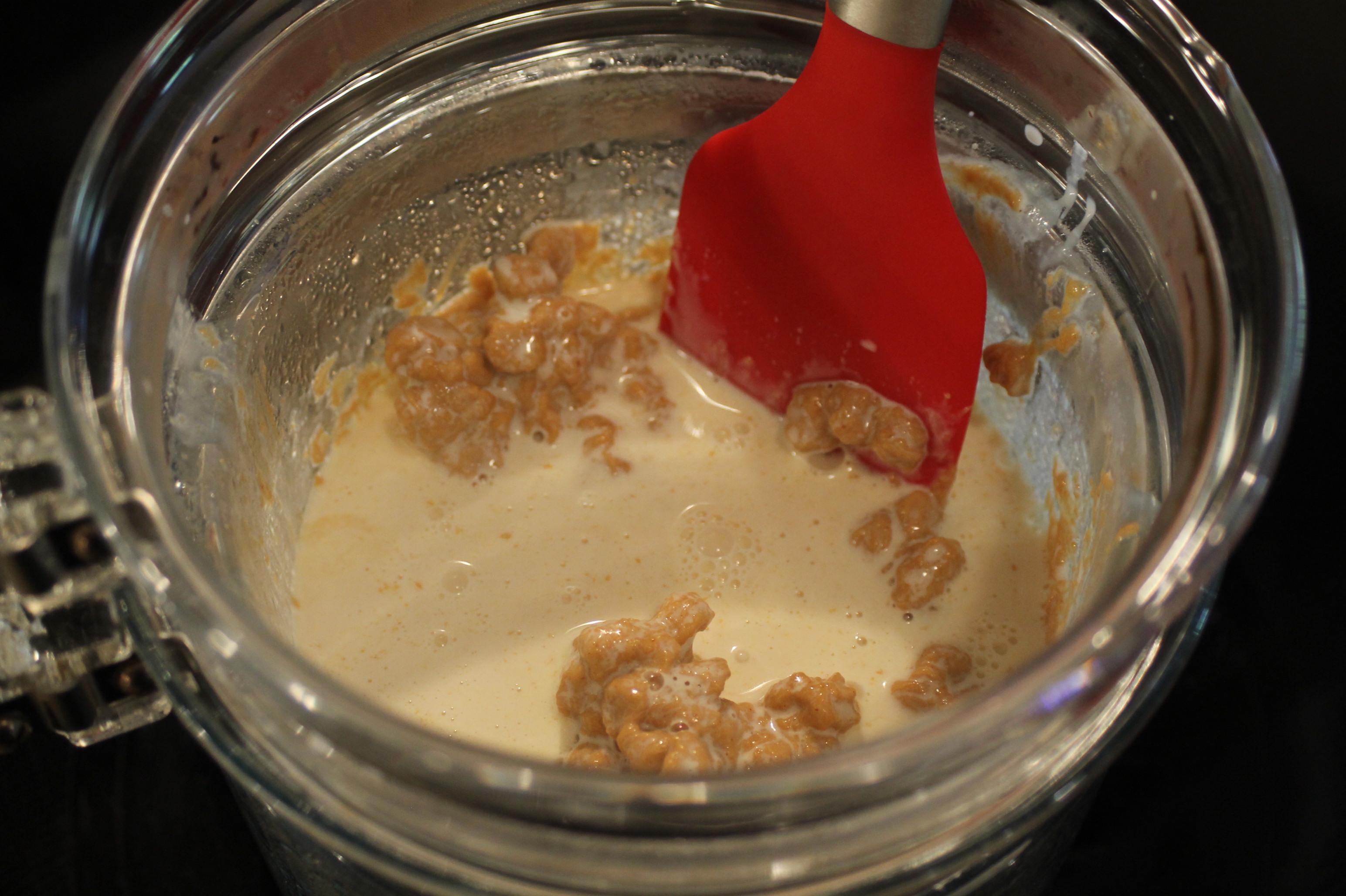 Stir in the peanut butter morsels. Remove from heat. Stir until the morsels are melted and combined.
